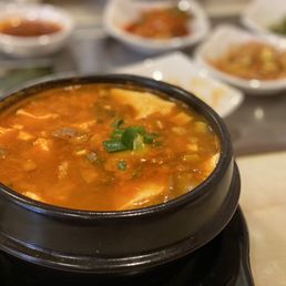 A little hole in the wall one block mauka of Kapiolani. A handful of tables with yakiniku grills in the center. You can buy meats and veggies for the grill or choose from the various entrees. This place is known for their savory meat jun. I highly recommend the kale bi chim, slow brained kal bi beef is a flavorful tomatoe based chili soup.